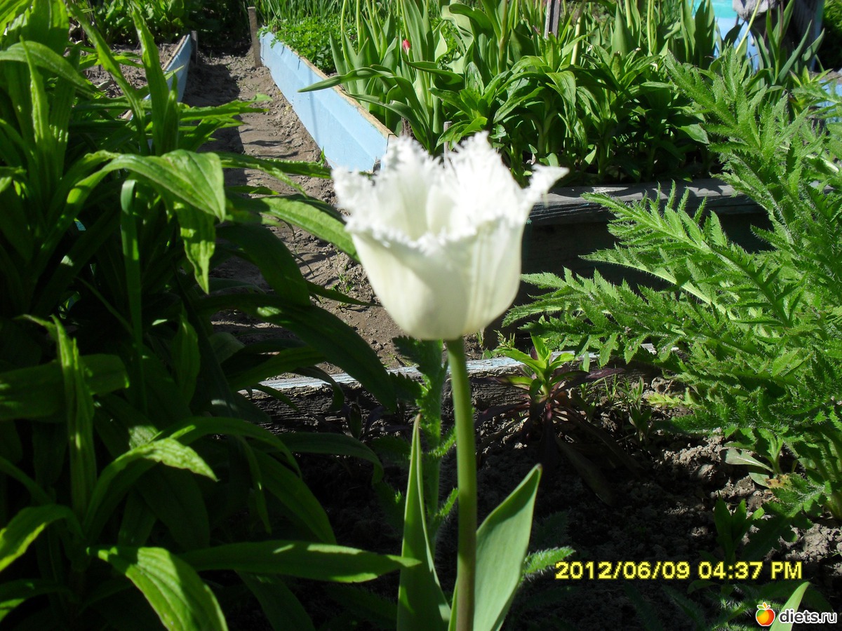 Тюльпан белый с  бахромой., альбом: Цветы на даче.