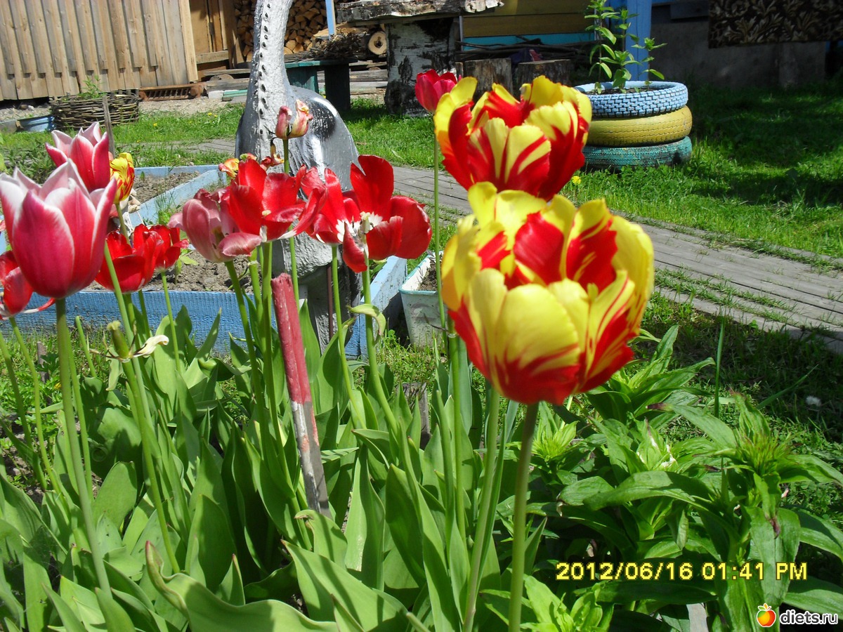 Очень красивые тюльпаны, особенно желтые с красным.
