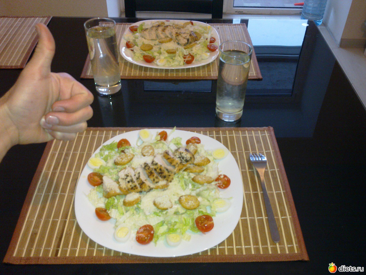«с любимкой приготовили салатик "Цезарь"»
