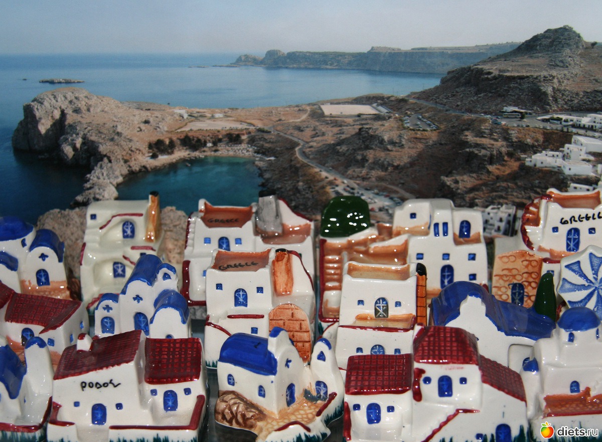 Это греческие домики . Я уж не знаю, как правильно определить материал, керамика это или фарфор. Но внутри они массивные, не пустотелые, а на сколах белого цвета (увы, были и потери).