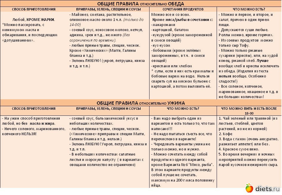 1 фото: "Система -60"(правила обеда, варианты ужина)