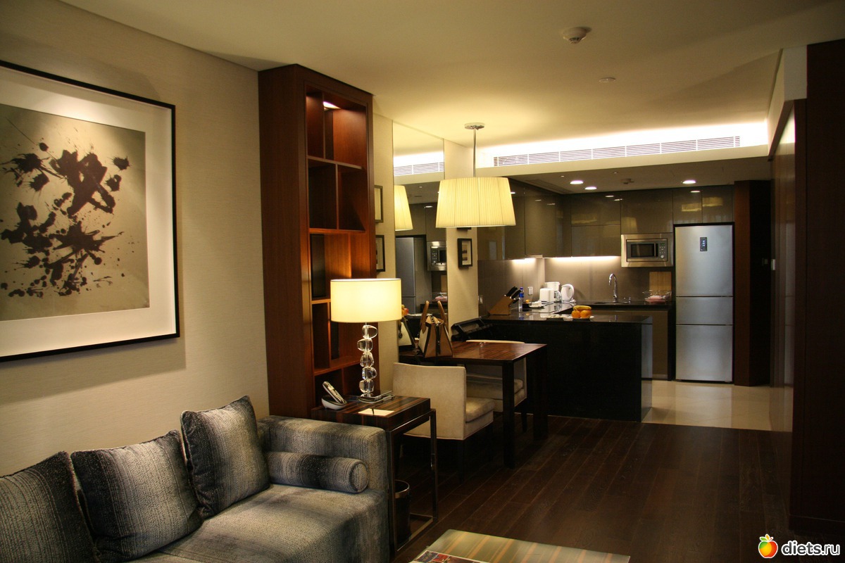 Это половина номера, где небольшая гостиная и кухня, за кухней маленький туалет и постирочная, рядом с входной дверью. А справа спальня и большая ванная. Мне тоже нравится, хотя малость темновато в целом.