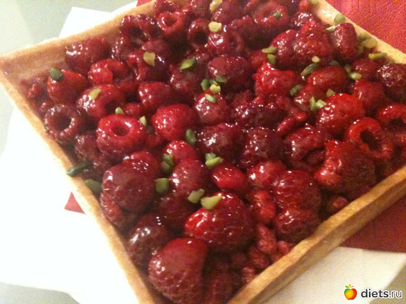 Затем выложены ягоды малины и слегка сбрызнуты чем-то, потому что остаются целыми.
