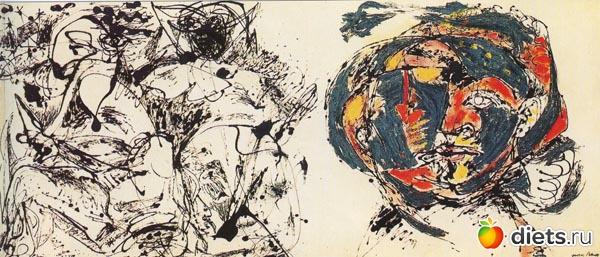 Художник вновь взял в руки кисть, сочетая, впрочем, работу кистью с разбрызгиванием краски. Явно усложнилась при этом композиция поллоковских картин.