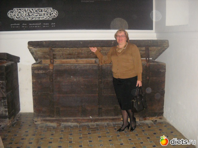 Эта фотография сделана в феврале в бывшем двореце танжерского султана на фоне огромного сундука для хранения казны.Он сделан из кедра и весь потолок тоже украшен резьбой на таком же кедре.