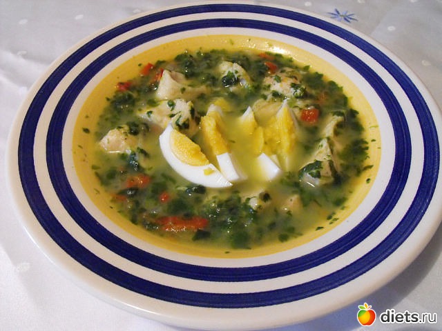 Из мороженного шпината , красного сладкого перца, лука и тёртой морковки варится бульон , в конце варки бросается нарезанная кусочками рыба и вливается немножко молока , чтоб нейтрализовать из шпината кислоту... Мороженный шпинат вполне может так же успешно заменить в зимнее время щавель , вкус,,щавельного супа " из шпината , сильно даже и не отличается .....