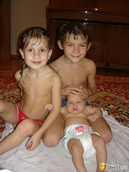 в маечке и носочках старшего товарища (мальчика 4 лет)
