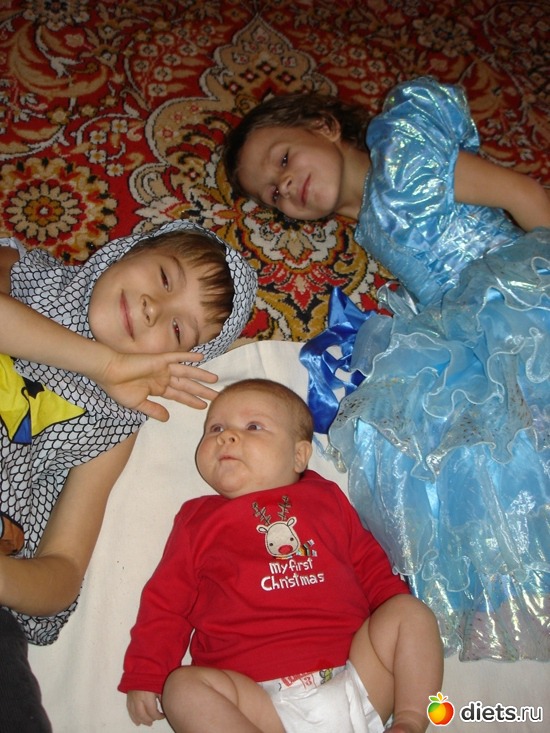 в маечке и носочках старшего товарища (мальчика 4 лет)