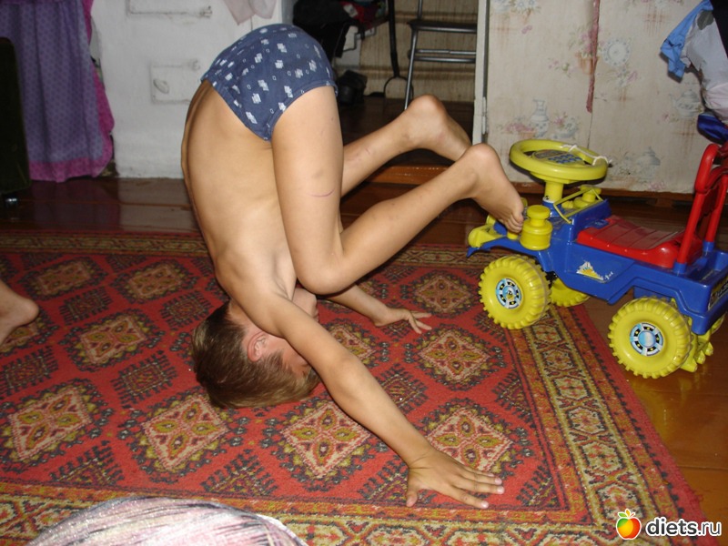 в маечке и носочках старшего товарища (мальчика 4 лет)