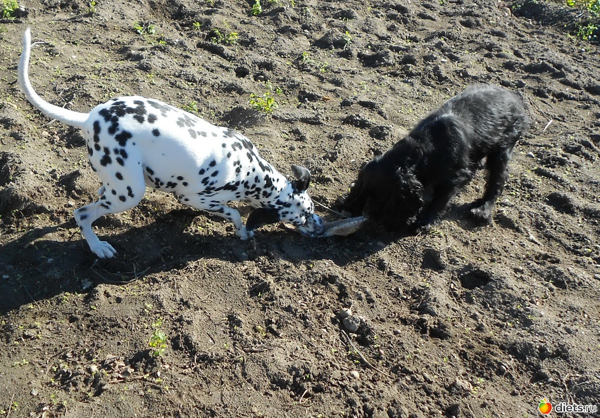 Нельма и Леди делят перчатку.КТО ЖЕ всё таки будет собирать картошку., альбом: зверушки