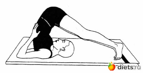 люблю эту позу за полный релакс. делаю ее немного не так. руками спину не держу, а вытягиваю их вдоль тела или закидываю за голову и соединяю с пальцами ног.
