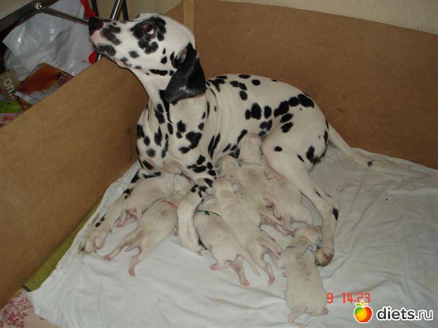 Да-да. Это точно. Когда только ощенилась, так 3 дня даже в туалет боялась от них отойти, а Через неделю мы ее уже к ним насильно запихивали, чтоб покормила
