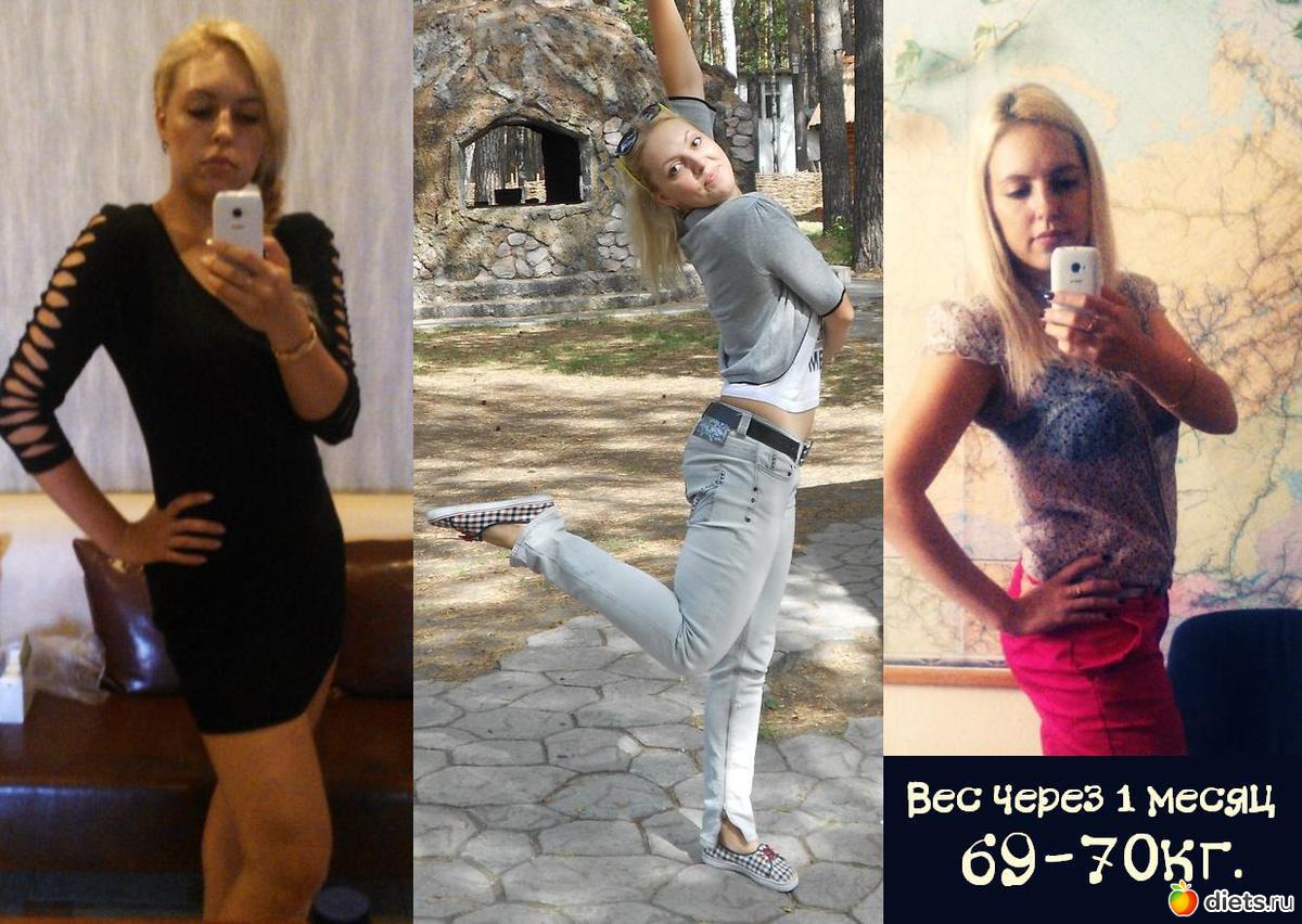 «Мой вес через месяц похудения 69-70кг.»