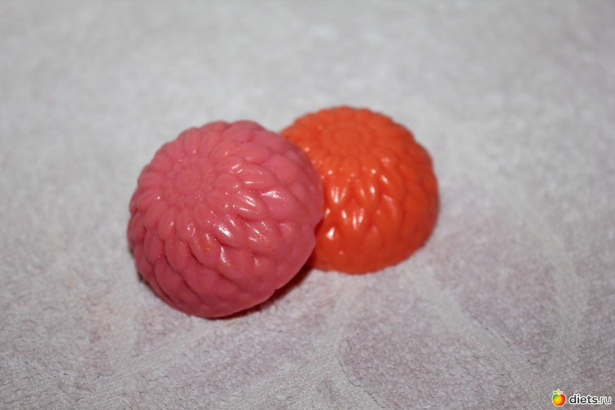 маленькие хризантемы (розовая - отдушка вишня,орнжевая отдушка банан), альбом: мыло своими руками