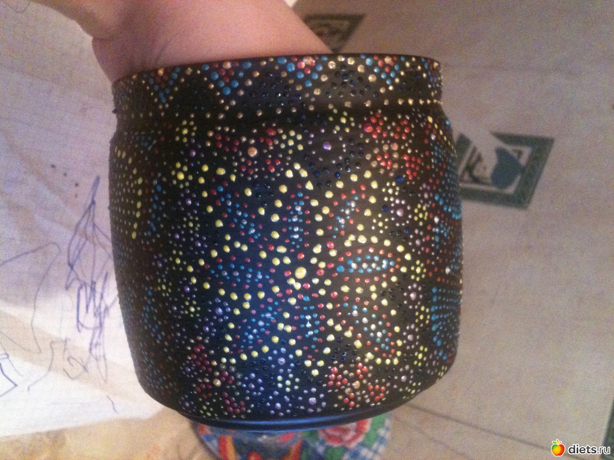 стеклянная баночка, загрунтованная и расписанная контурами