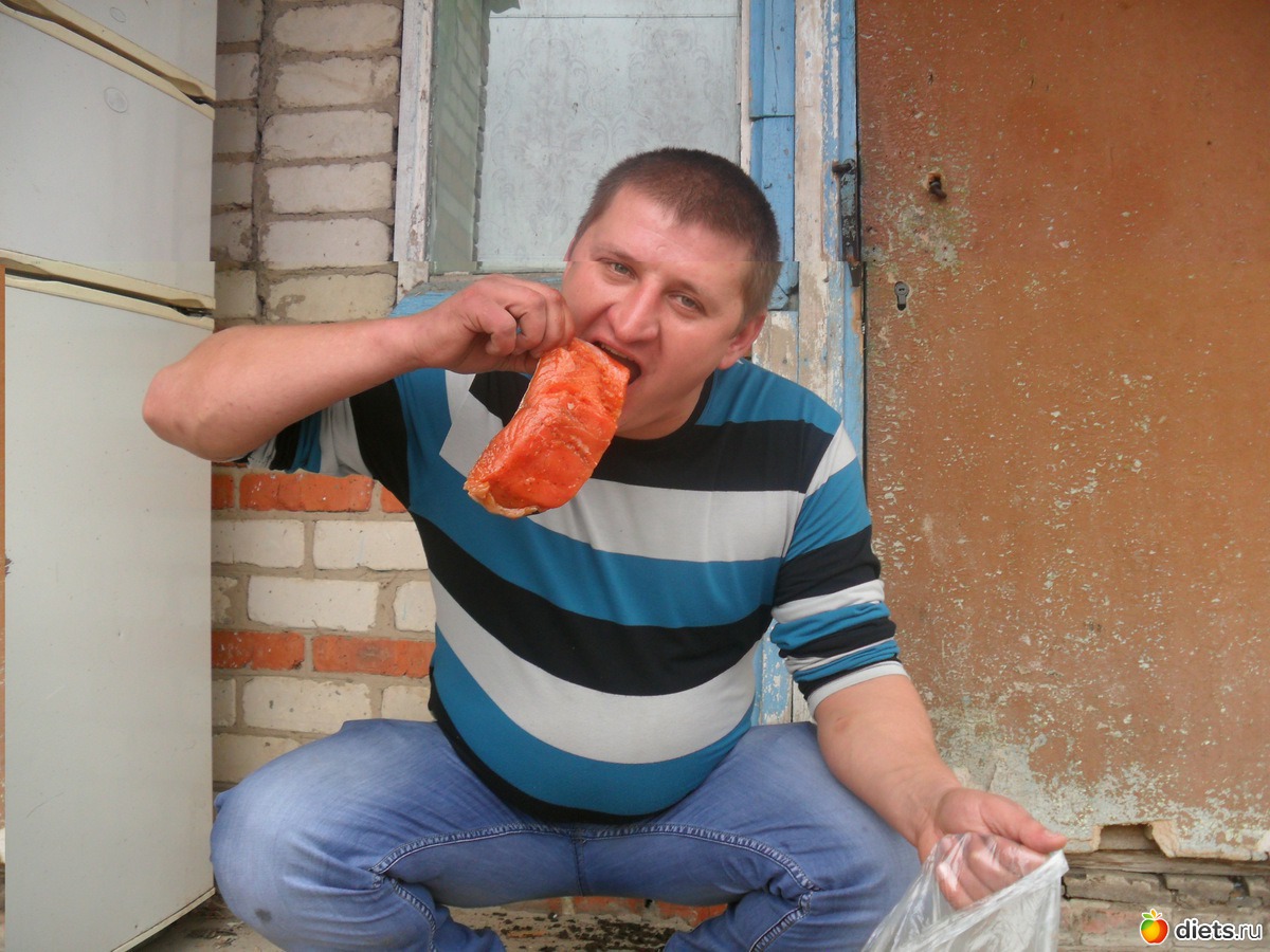 «Мой средний сынок с куском сёмги позирует»