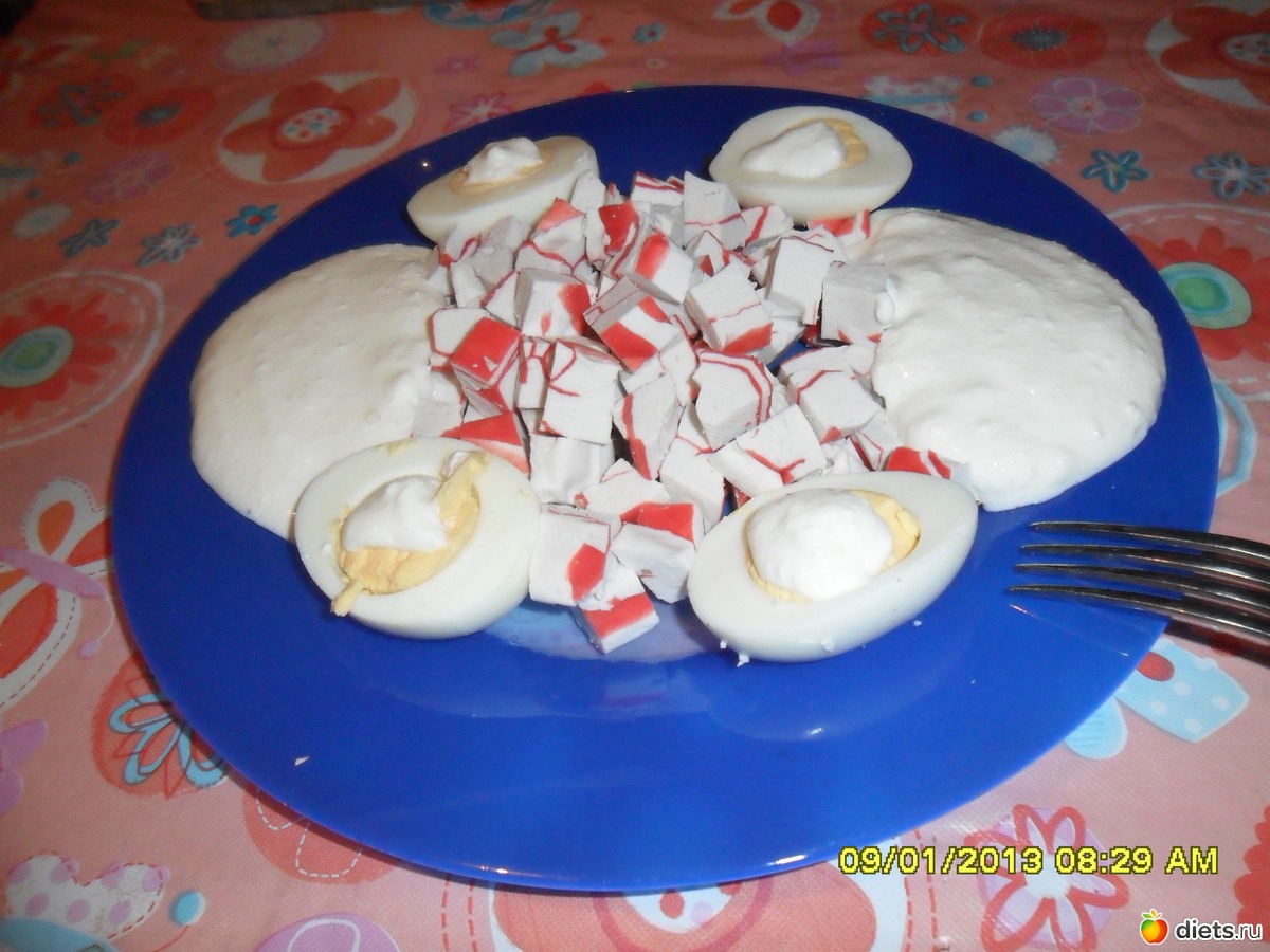 «Крабовые палочки, соус из творога и кефира и яйца»