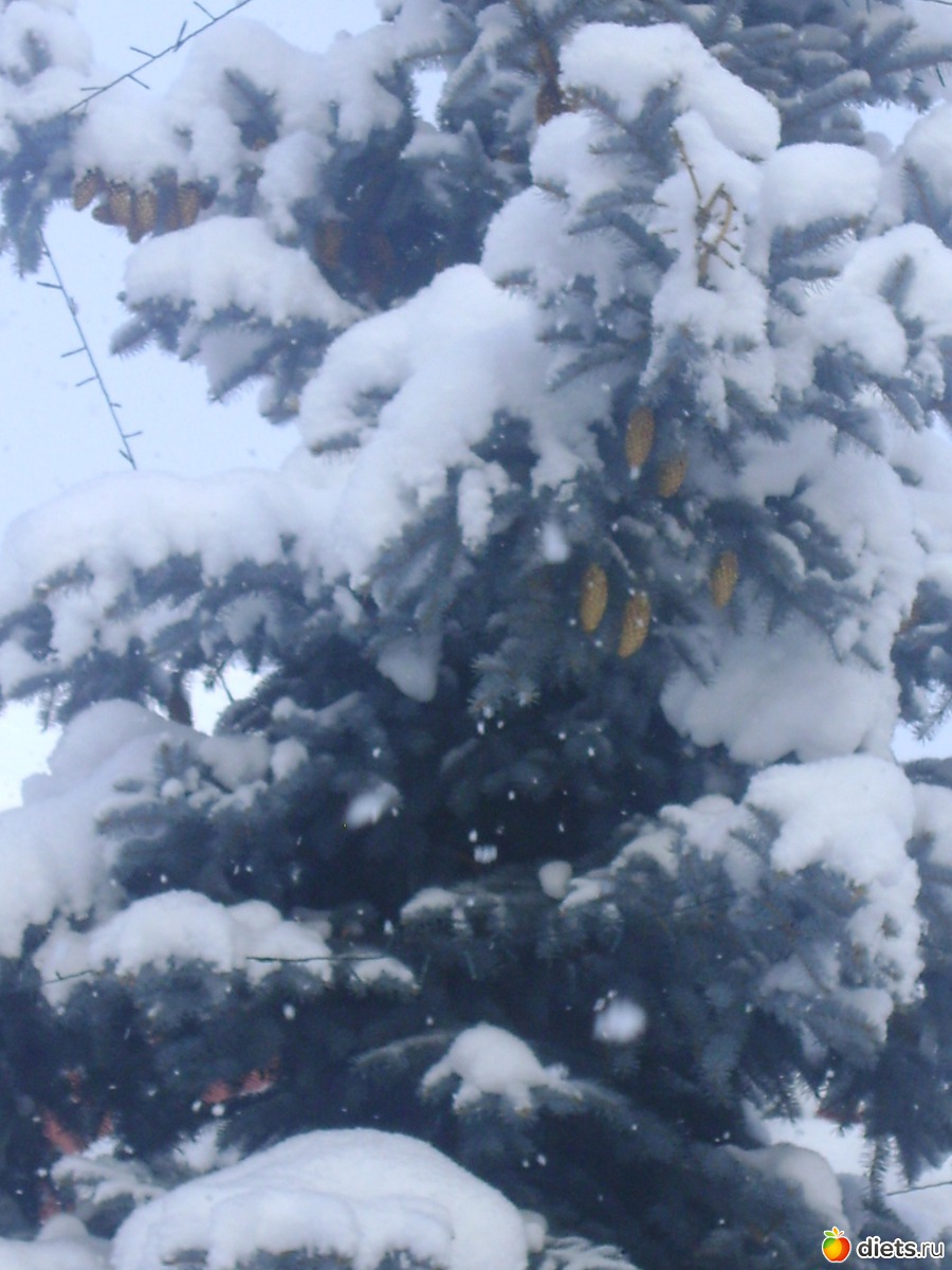 я их и пыталась сфотографировать. но столько снега много что только часть шишек видно.