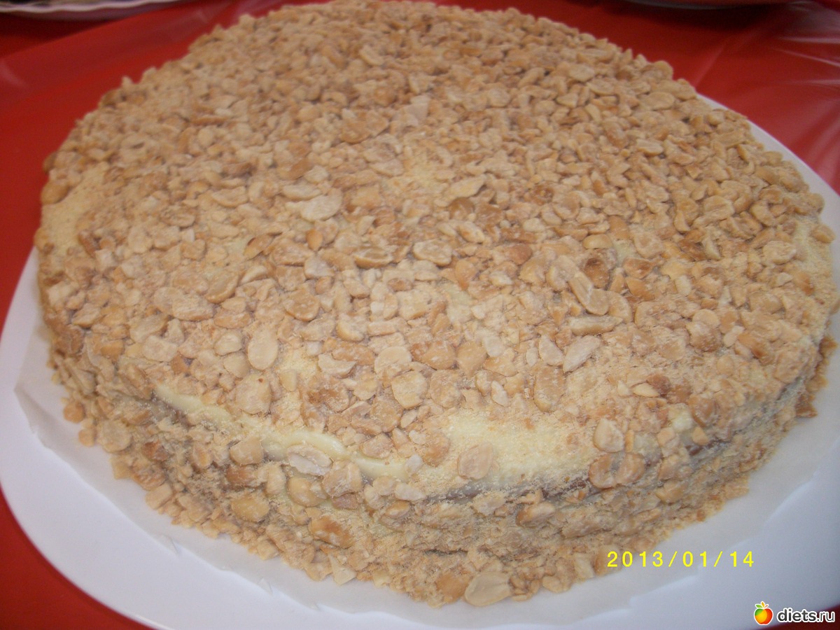 Засыпать торт орешками
