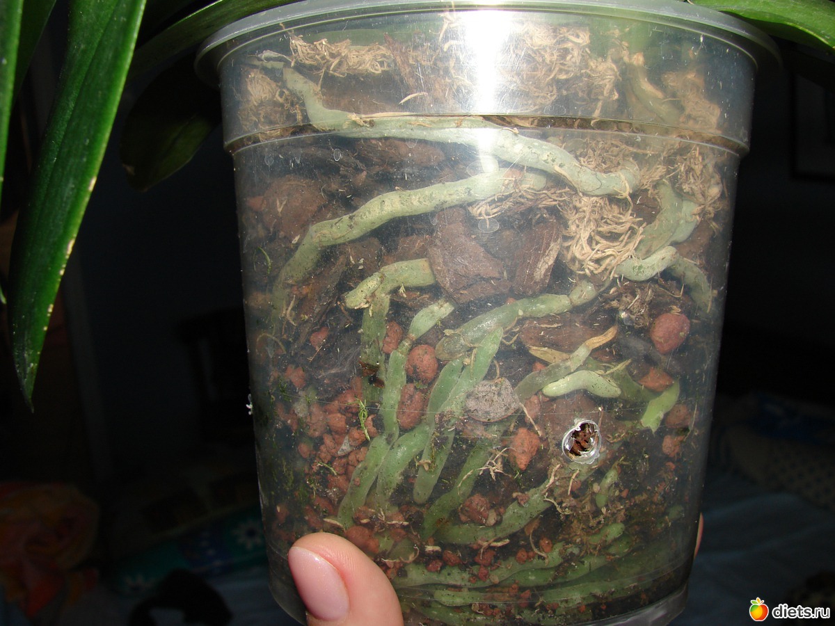 часть корней светлая, а часть зеленоватая - не торопитесь с поливом, альбом: Орхидеи