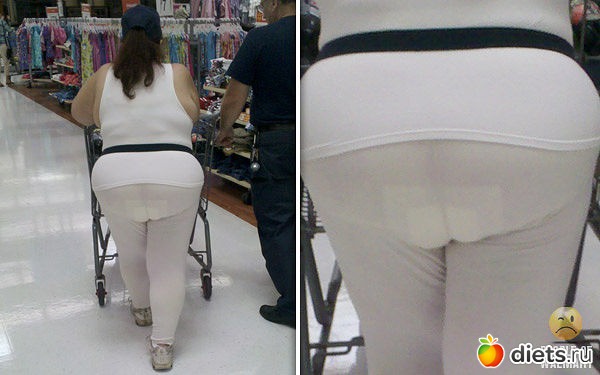 это же надо быть такой безбашенной, что на такую ..опу полупрозрачные белые лосины одеть