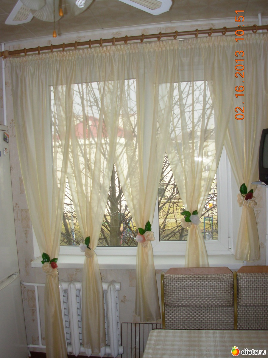 Вверху одна на одну заходит на 35-40 см и собрано все вместе на широкую тесьму -4 нитки !