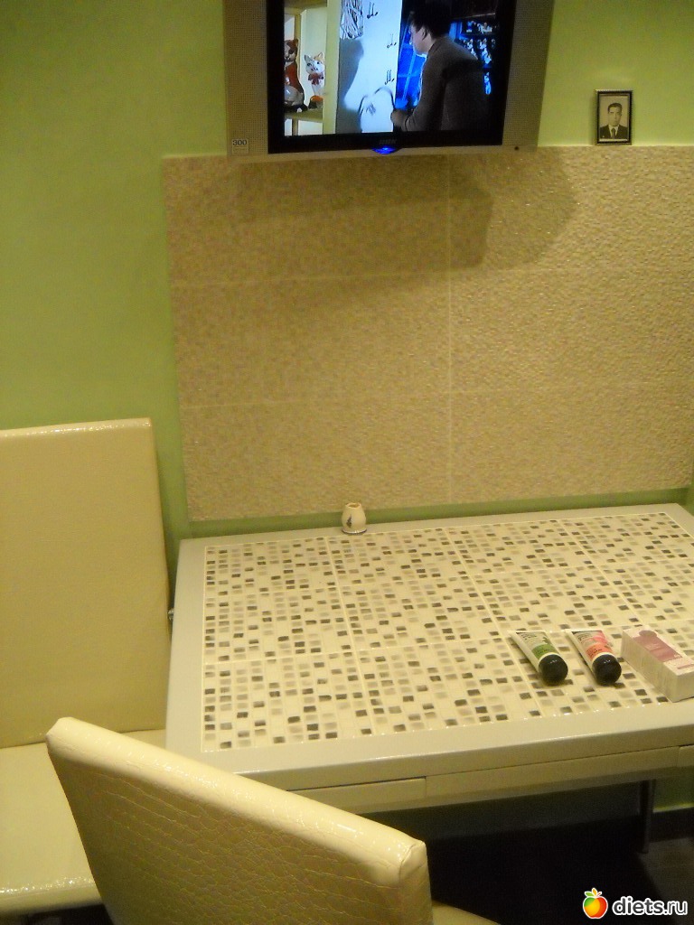 «Стол, декорирован мозаикой, а на стене мозаичное панно»