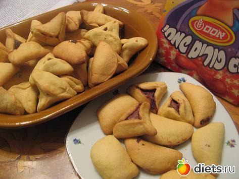 холодное тесто раскатать слоем в 1 см.порезать на кружки,в центр положить чайную ложку начинки.закрыть ушко ,придав ему форму треугольника.положить на смазанный жиром противень.выпекать при 180 градусах примерно 20 минут ( в зависимосит от духовки)-до золотистого цвета