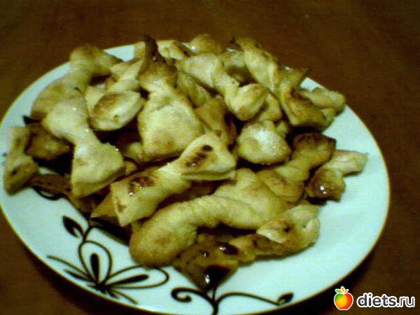 Маргарин порубить с мукой, чтобы получилась крошка. Добавить пиво. Вымешать тесто, поставить в холодильник минимум на 1 час. Затем раскатать пласт, толщиной около полсантиметра(можно меньше, если нужны хрустящие печеньки), порезать на "лоскутки" и свернуть бантики. Выложить на противень(его смазывать не надо), посыпать сахаром и выпекать при 180-200градусах 20-30минут