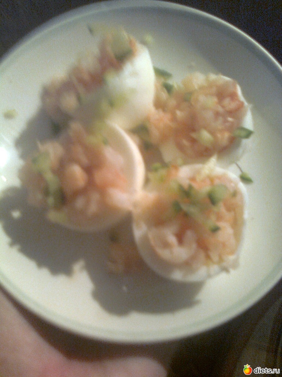 Праздничная  закуска: яйца фаршированные   креветками  с  зеленью, альбом: фото меню или то , что я  ем!