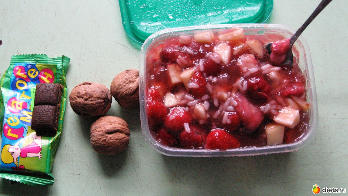 мой ланч, фрукты в желе, орехи и 2 кусочка гематогена, альбом: мои завтраки