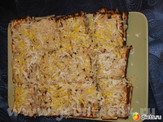 Смешать содержимое 2-х банок с майонезом,посолить,протереть на тёрке яйца,промазать слой за слоем листья мацы.Поставить в холодильник