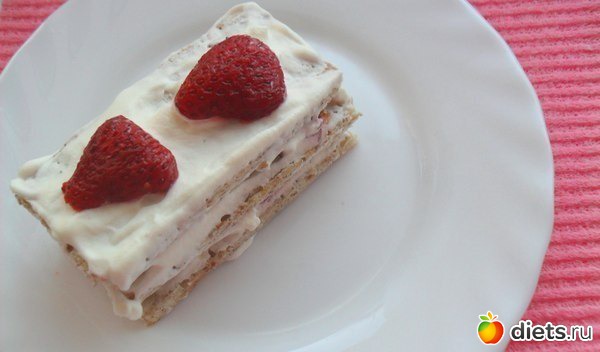 Взбить охлажденные сливки на медленной скорости с медом или сахаром до загустения. Клубнику промыть и срезать хвостики (или разморозить). На тарелку выложить хлебец и промазать взбитыми сливками выложить порезанные ягоды клубники. Выкладывать слой за слоем. сверху украсить клубникой. Настояться 5-10 мин (хлебцы должны пропитаться) и лучше в холодильнике.