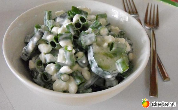 В пиалке соединить огурцы, творог и зеленый лук, приправить солью по вкусу и аккуратно перемешать снизу вверх.