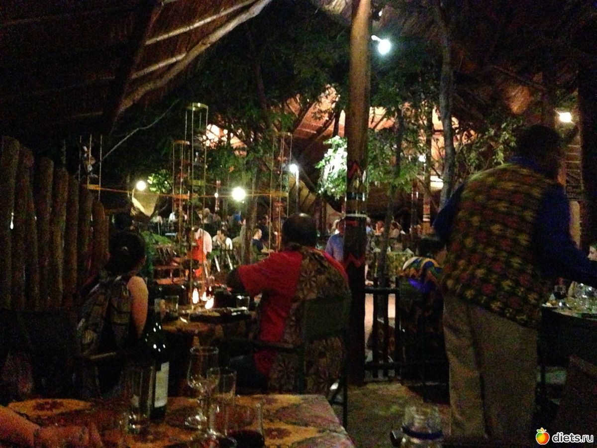 «Всемирно известный ресторан "Boma", здесь есть возможность попробовать мясо диких животных, поиграть на барабанах, погадать на куриных косточках, потанцевать вместе с артистами. Попробовать местный напиток чибуку»