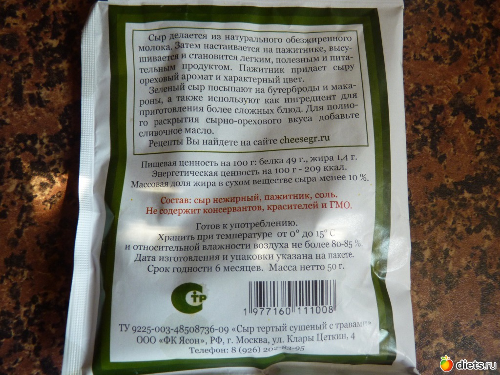 на обороте сыра зеленого, альбом: Продукты для диеты Дюкана
