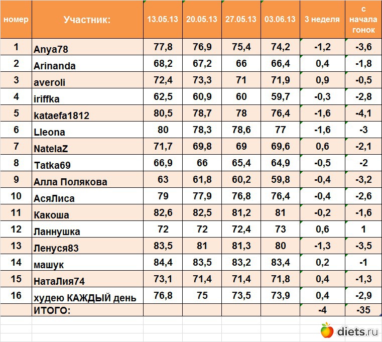полный список участников  гонок