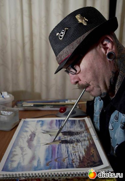 Рисовать художник начал очень рано, и по его словам, на освоение кисти у него ушло не так уж и много времени. Сейчас рисовать ртом для него не труднее, чем для нас взять в руки ложку. Кстати, Стив Чейберс счастливо женат и имеет четырех детей. По-моему, прекрасный образец человека, реализовавшего себя в жизни, несмотря ни на что.