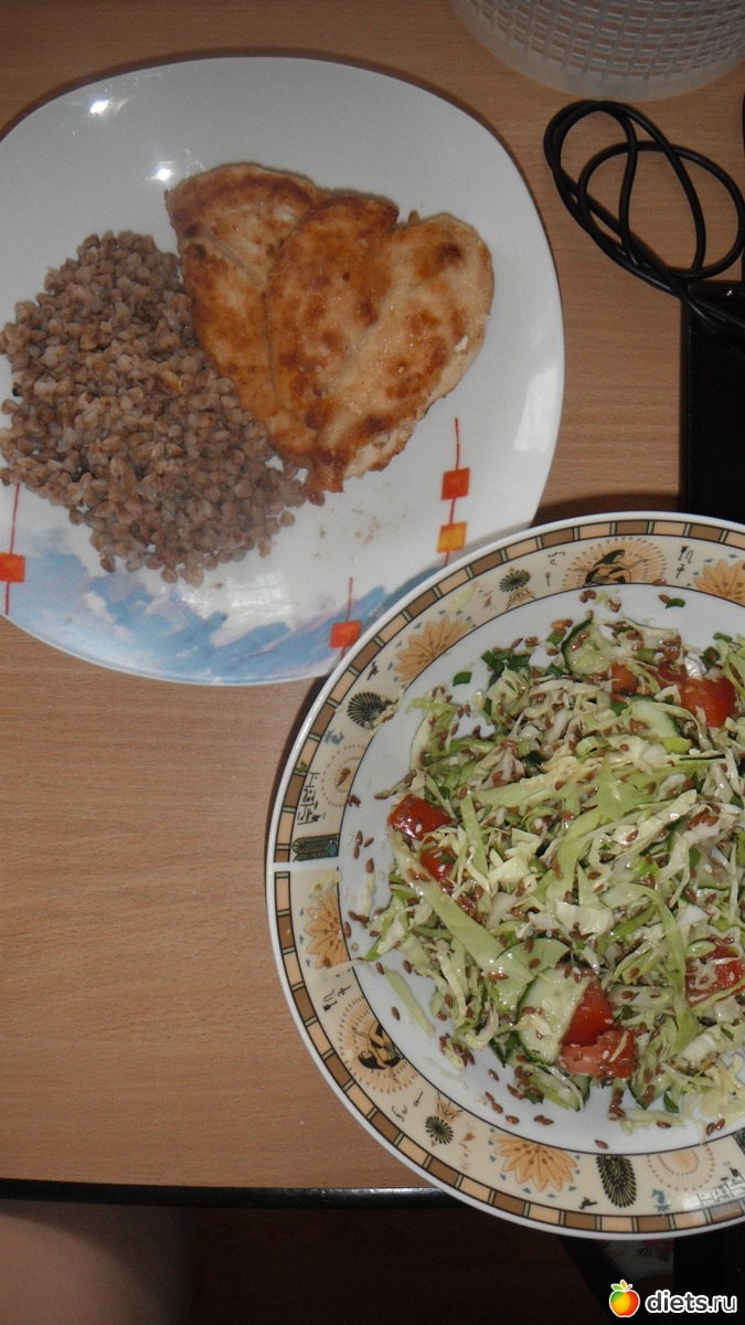 Гречка, курогрудь, овощной салат с льняными семечками и кунжутом, альбом: Правильная еда