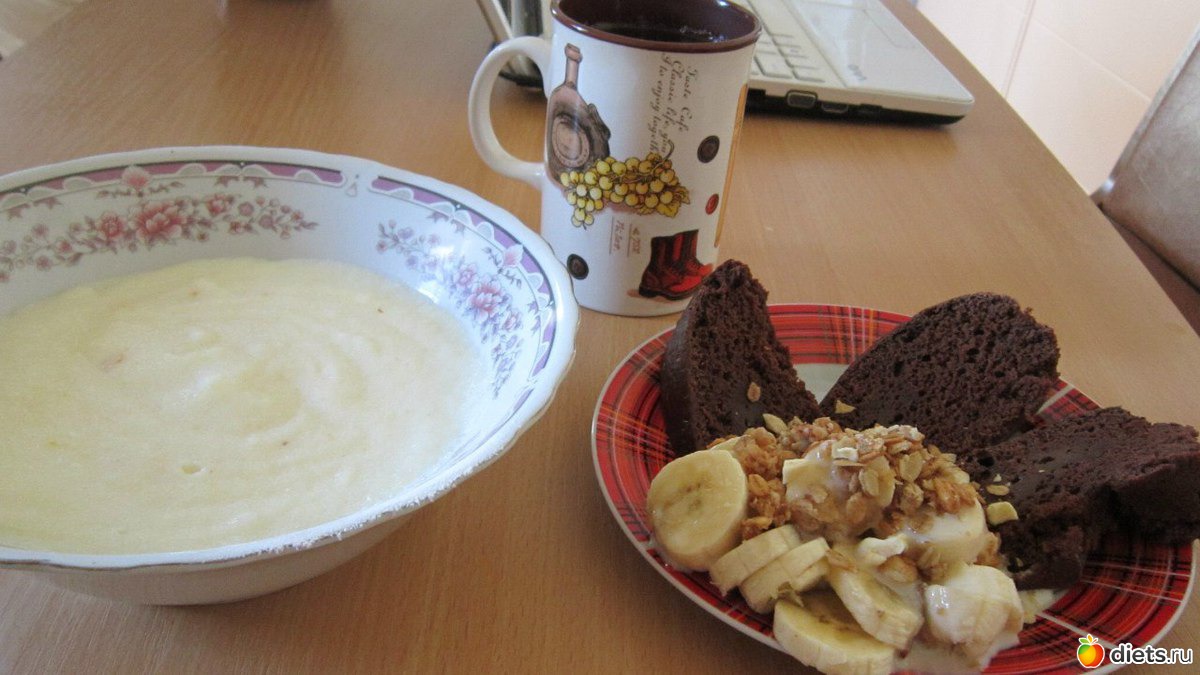 «Манная кашка// шоколадный кекс//банан со сгущенкой и мюслями»