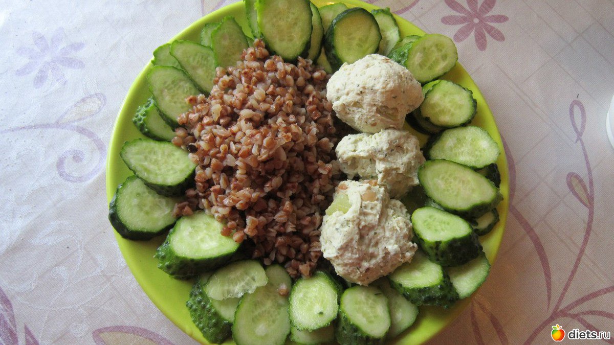 Обед: куриные фрикадельки, греча, огурец, альбом: Мои рецепты// Фото-меню