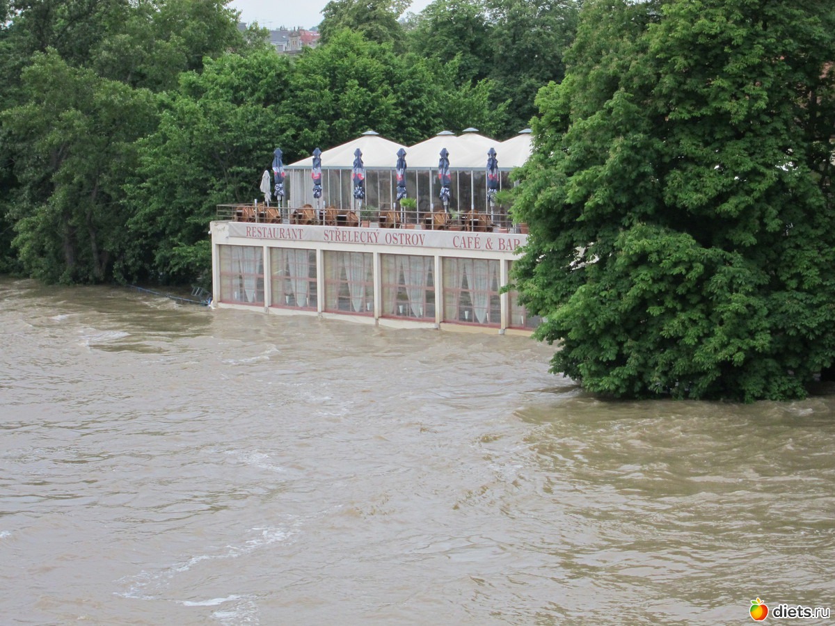 Затопленный ресторанчик на набережной в Праге