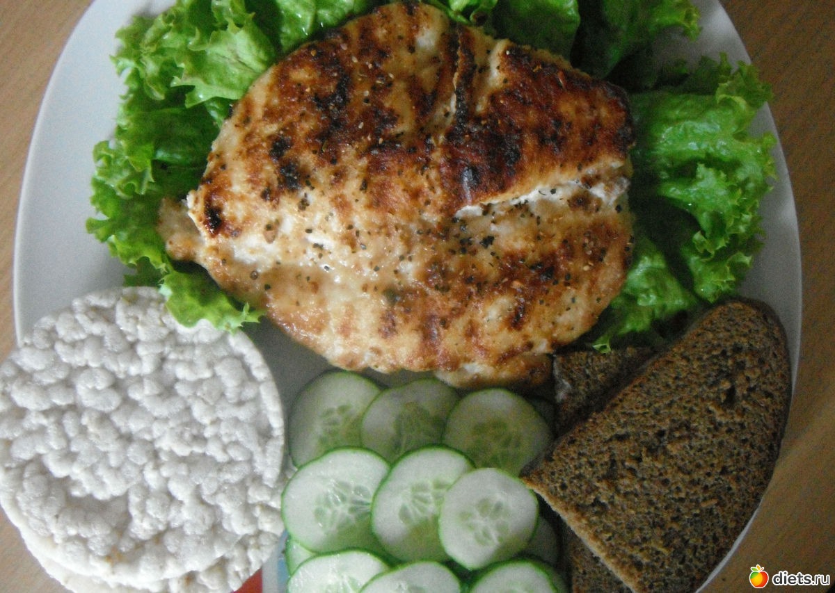 Гречка, курогрудь, овощной салат с льняными семечками и кунжутом