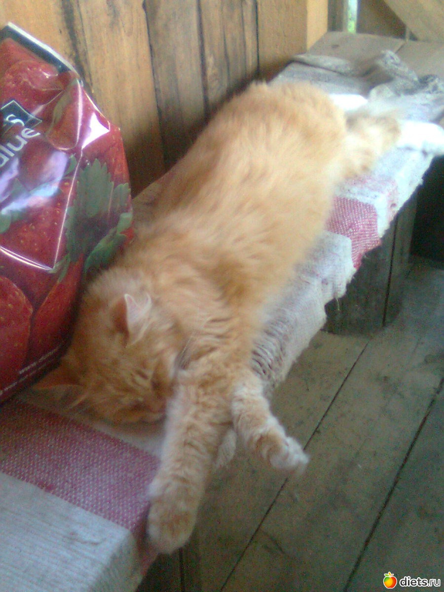 Это он в беседке на лавке спит после обеда . Мы с друзьями еще сидели отдыхали а он уже отвалился на боковую.