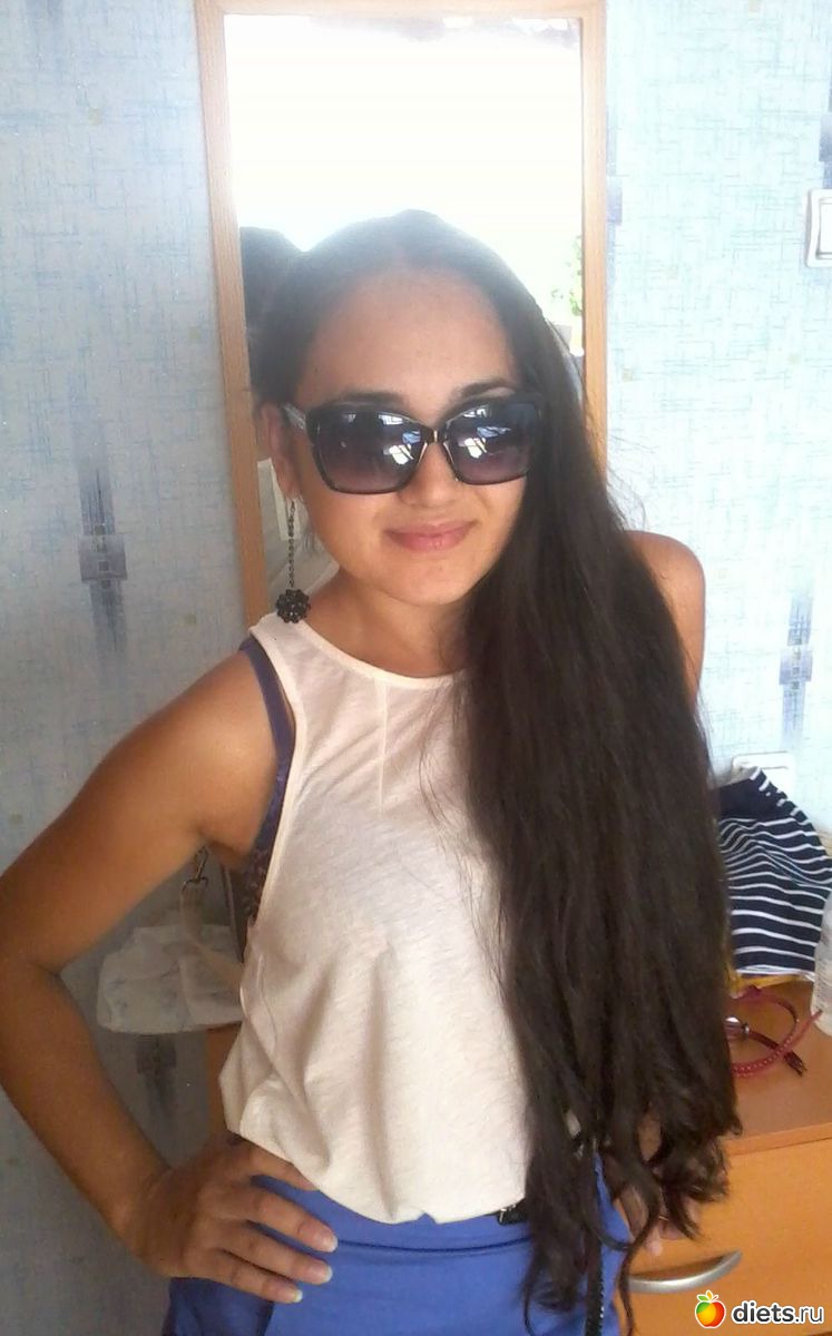 Очень красивая и стройная девочка.Волосы вообще шикарные, о таких можно только мечтать. С весом так держать!