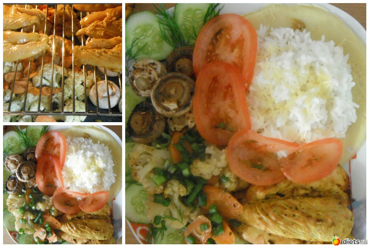 Гречка, курогрудь, овощной салат с льняными семечками и кунжутом
