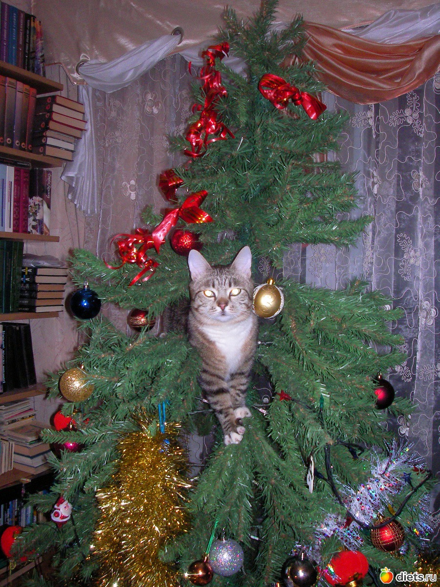 Думаю, что в следующем году вес кота превысит вес елочки, и будет тоже самое - елка на пол