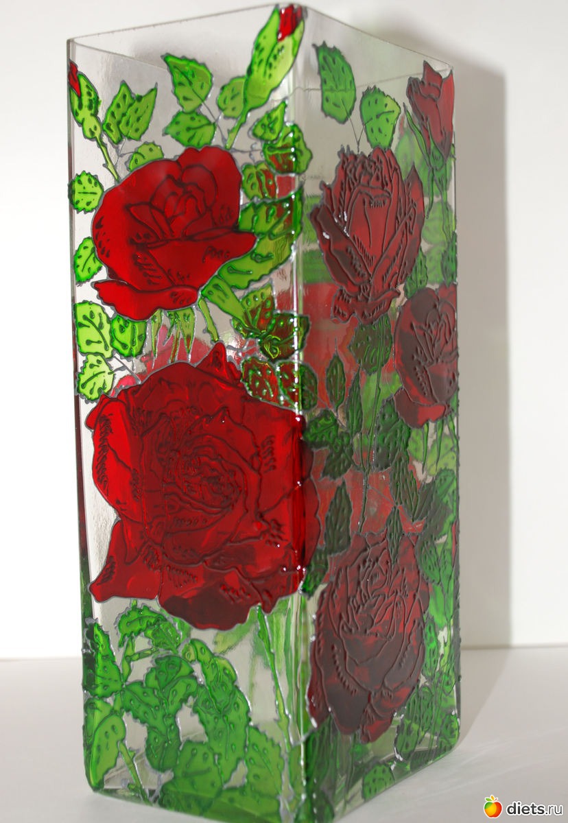 Ваза "Роза в квадрате" размер : 10*9 Высота 23 см цена 1000 руб, альбом: любая ваза 500 руб, Мой работы, роспись (все продается)