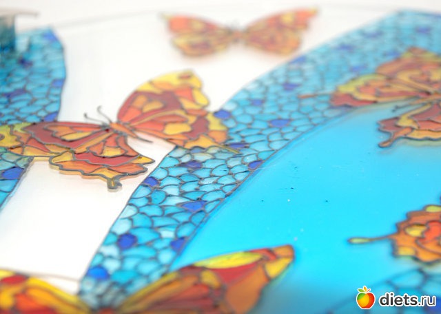 Поднос "Бабочки" стекло размер: диаметр 30 см цена 1500 руб, альбом: любая ваза 500 руб, Мой работы, роспись (все продается)