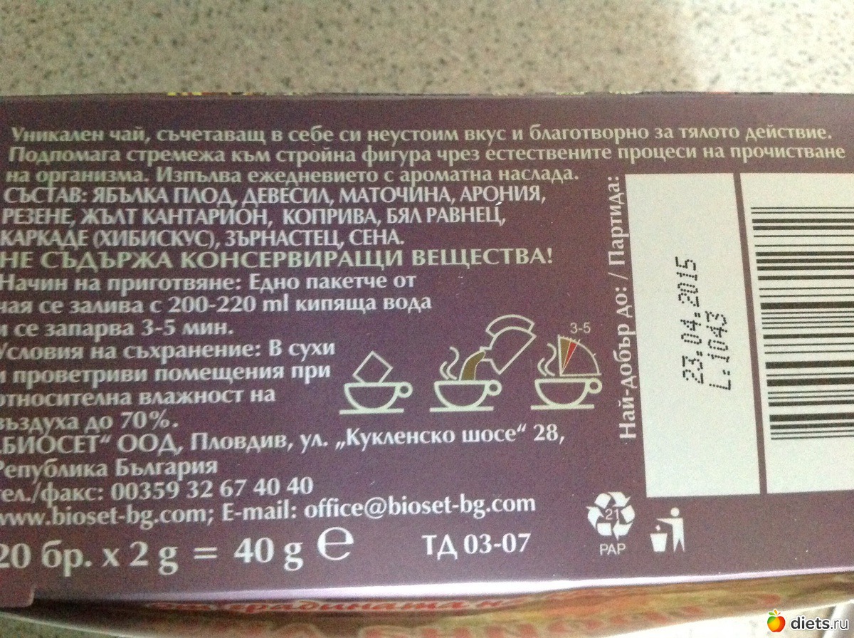 2 фото: похудевательный чаек из Болгарии